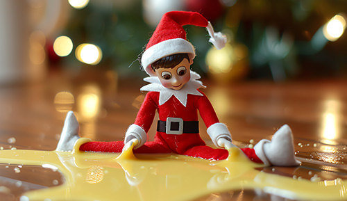 Rule Reminder: Pose the elf with a mini chalkboard or whiteboard that highlights a class rule, such as "Remember to raise your hand!" or "Clean up after yourself."